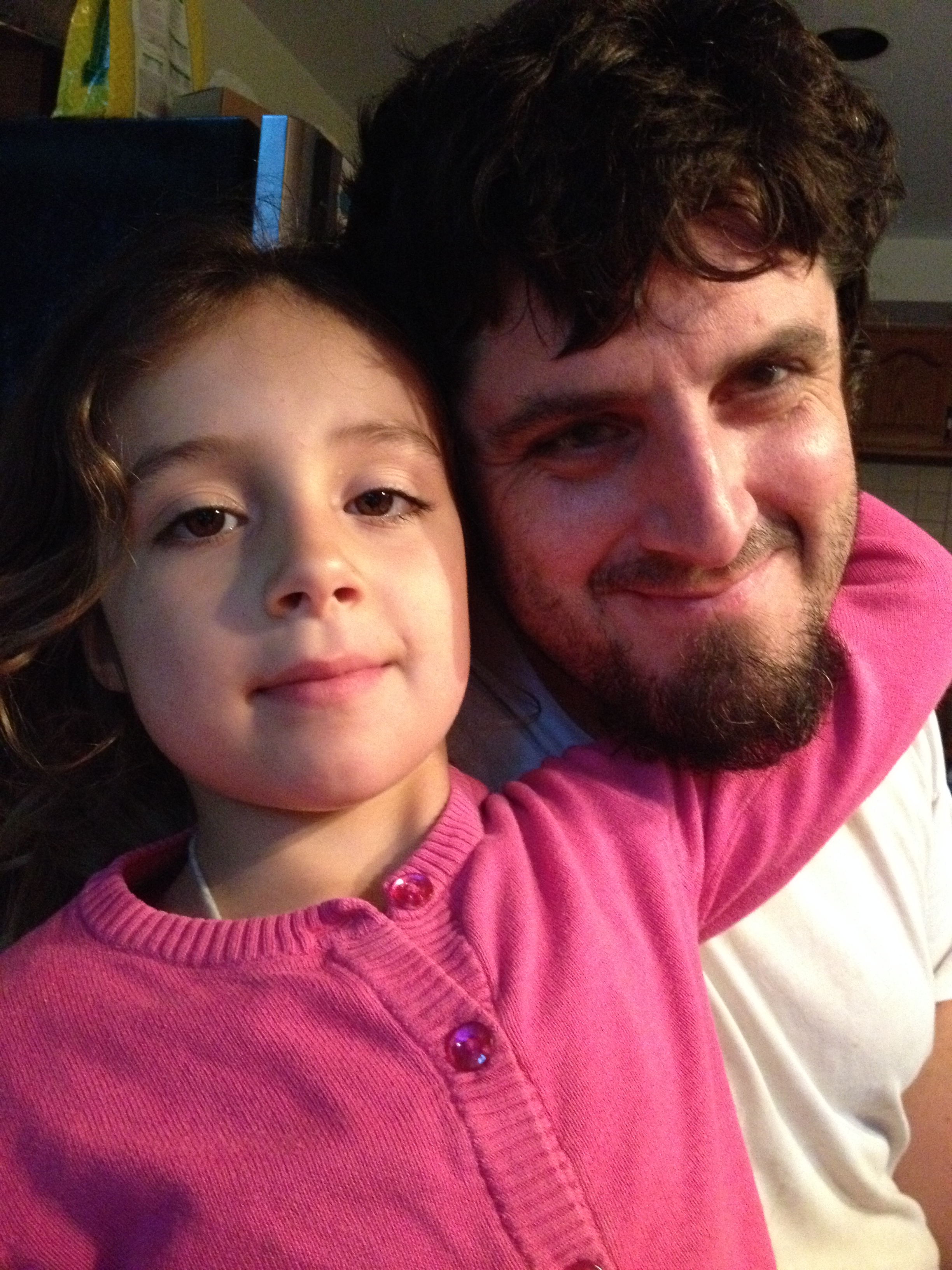 The five year old knows the iPhone camera and her Dad his kindly looks smile wrinkles Good Nights Good Mornings.